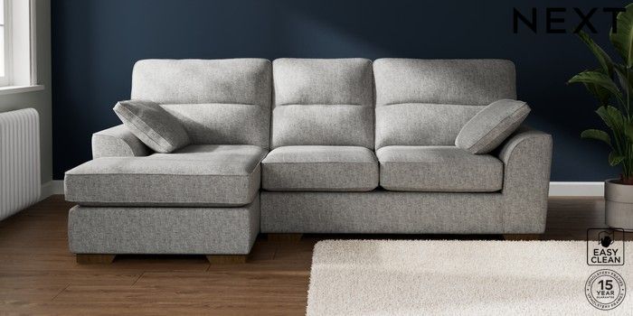 7.2.10 Buy Stamford Highback Medium Sofa Chaise - Left Hand Chunky Boucle Easy Clean Light Grey Large Square Angle - Mid from the Laura Ashley online shop Click here to use our website with more accessibility support, for example screen readers