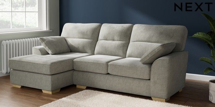 6.12.1 Buy Stamford Highback Medium Sofa Chaise - Left Hand Chunky Chenille Light Grey Large Square Angle - Light from the Laura Ashley online shop Click here to use our website with more accessibility support, for example screen readers