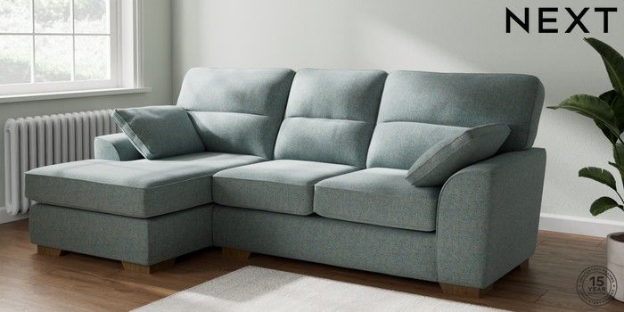 7.2.6 Buy Stamford Highback Medium Sofa Chaise - Left Hand Chunky Marl Mid Blue Large Square Angle - Mid from the Laura Ashley online shop Click here to use our website with more accessibility support, for example screen readers