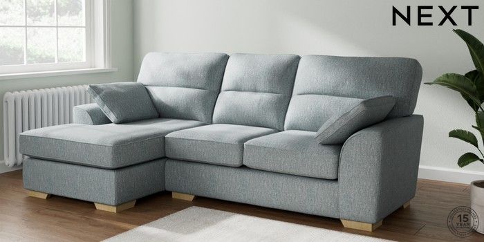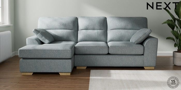 7.2.10 Buy Stamford Highback Medium Sofa Chaise - Left Hand Chunky Weave Mid Blue Large Square Angle - Light from the Laura Ashley online shop Click here to use our website with more accessibility support, for example screen readers