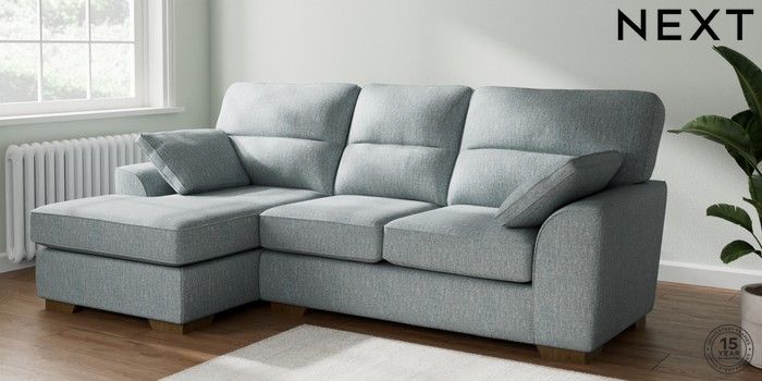 7.2.6 Buy Stamford Highback Medium Sofa Chaise - Left Hand Chunky Weave Mid Blue Large Square Angle - Mid from the Laura Ashley online shop Click here to use our website with more accessibility support, for example screen readers