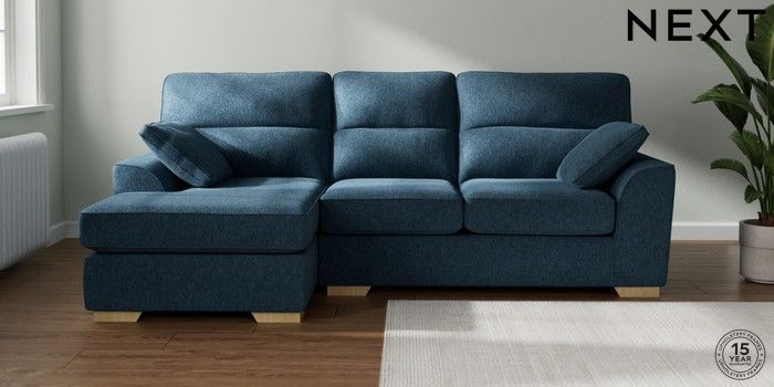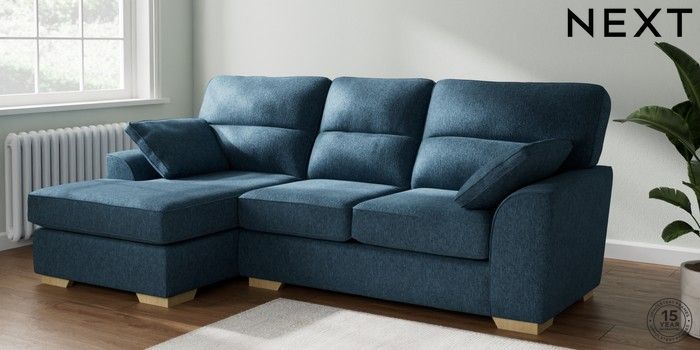 7.2.10 Buy Stamford Highback Medium Sofa Chaise - Left Hand Cotswold Chenille Dark Blue Large Square Angle - Light from the Laura Ashley online shop Click here to use our website with more accessibility support, for example screen readers
