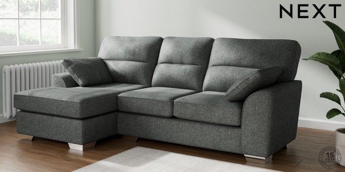 7.2.6 Buy Stamford Highback Medium Sofa Chaise - Left Hand Cotswold Chenille Dark Grey Large Square Angle - Chrome Metal from the Laura Ashley online shop Click here to use our website with more accessibility support, for example screen readers