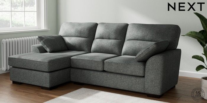 7.2.6 Buy Stamford Highback Medium Sofa Chaise - Left Hand Cotswold Chenille Dark Grey Large Square Angle - Dark from the Laura Ashley online shop Click here to use our website with more accessibility support, for example screen readers