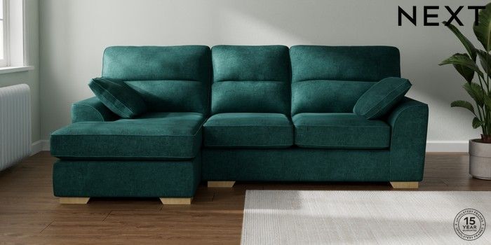 7.2.10 Buy Stamford Highback Medium Sofa Chaise - Left Hand Plush Chenille Dark Teal Green Large Square Angle - Light from the Laura Ashley online shop Click here to use our website with more accessibility support, for example screen readers
