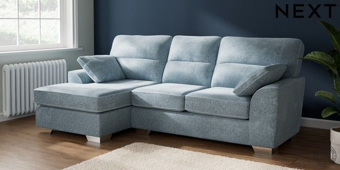 7.2.6 Buy Stamford Highback Medium Sofa Chaise - Left Hand Plush Chenille Light Blue Large Square Angle - Chrome Metal from the Laura Ashley online shop Click here to use our website with more accessibility support, for example screen readers
