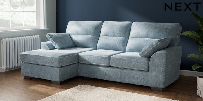 7.2.6 Buy Stamford Highback Medium Sofa Chaise - Left Hand Plush Chenille Light Blue Large Square Angle - Gunmetal from the Laura Ashley online shop Click here to use our website with more accessibility support, for example screen readers