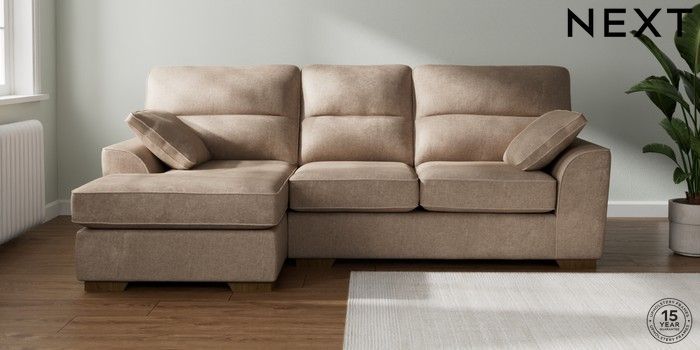 7.2.10 Buy Stamford Highback Medium Sofa Chaise - Left Hand Plush Chenille Mid Natural Large Square Angle - Mid from the Laura Ashley online shop Click here to use our website with more accessibility support, for example screen readers