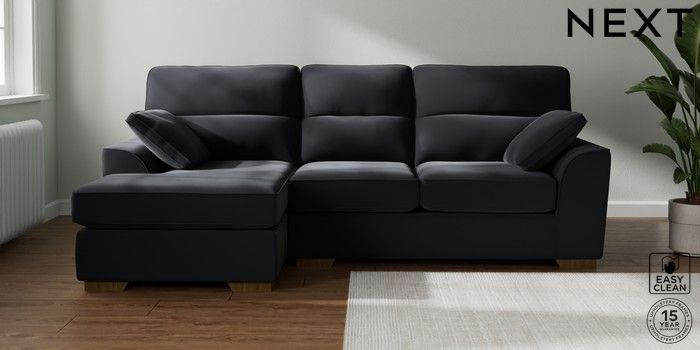 7.2.10 Buy Stamford Highback Medium Sofa Chaise - Left Hand Plush Velvet Easy Clean Charcoal Grey Large Square Angle - Mid from the Laura Ashley online shop Click here to use our website with more accessibility support, for example screen readers