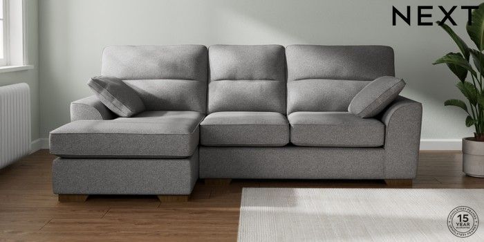 7.2.10 Buy Stamford Highback Medium Sofa Chaise - Left Hand Studio Chenille Mid Grey Large Square Angle - Mid from the Laura Ashley online shop Click here to use our website with more accessibility support, for example screen readers