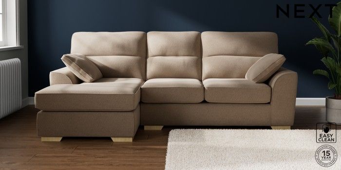 7.2.10 Buy Stamford Highback Medium Sofa Chaise - Left Hand Tweedy Blend Easy Clean Light Dove Natural Large Square Angle - Light from the Laura Ashley online shop Click here to use our website with more accessibility support, for example screen readers