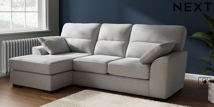 7.2.6 Buy Stamford Highback Medium Sofa Chaise - Left Hand Tweedy Blend Easy Clean Light Silver Grey Large Square Angle - Dark from the Laura Ashley online shop Click here to use our website with more accessibility support, for example screen readers