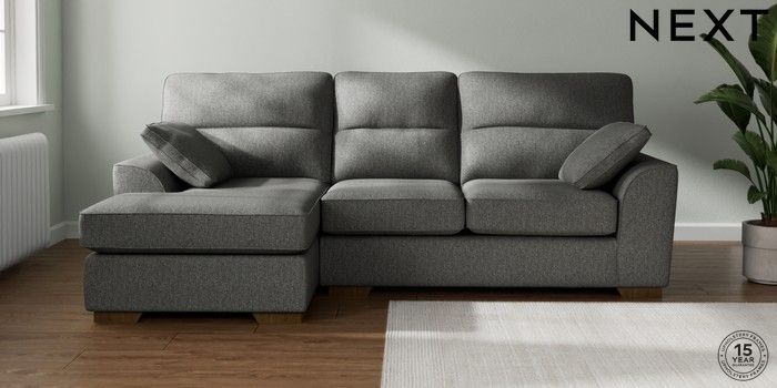 7.2.10 Buy Stamford Highback Medium Sofa Chaise - Left Hand Tweedy Chenille Dark Grey Large Square Angle - Mid from the Laura Ashley online shop Click here to use our website with more accessibility support, for example screen readers