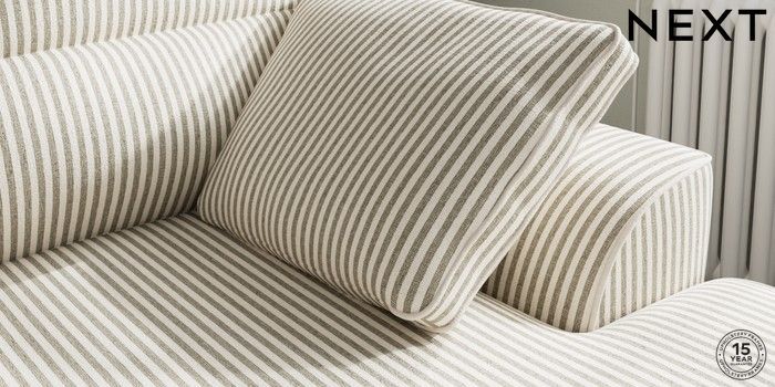 7.3.1 Buy Stamford Highback Medium Sofa Chaise - Right Hand Chenille Stripe Moss Green Large Square Angle - Brushed Brass from the Laura Ashley online shop Click here to use our website with more accessibility support, for example screen readers