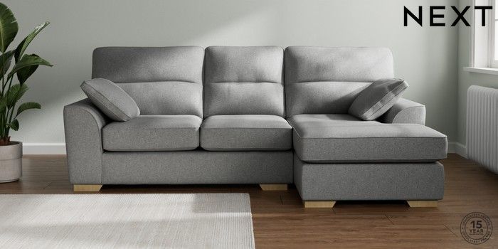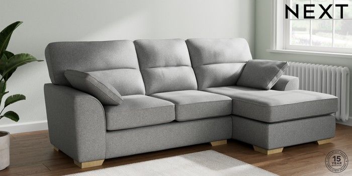 7.2.10 Buy Stamford Highback Medium Sofa Chaise - Right Hand Chunky Weave Mid Grey Large Square Angle - Light from the Laura Ashley online shop Click here to use our website with more accessibility support, for example screen readers
