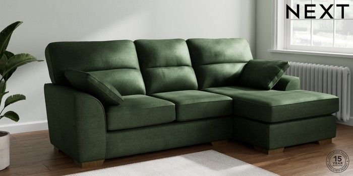7.2.6 Buy Stamford Highback Medium Sofa Chaise - Right Hand Luxe Chenille Dark Green Large Square Angle - Mid from the Laura Ashley online shop Click here to use our website with more accessibility support, for example screen readers