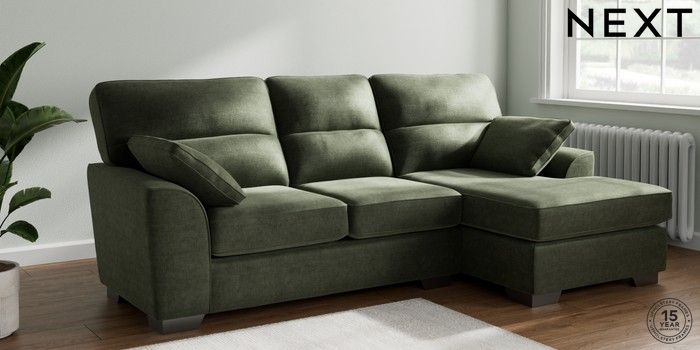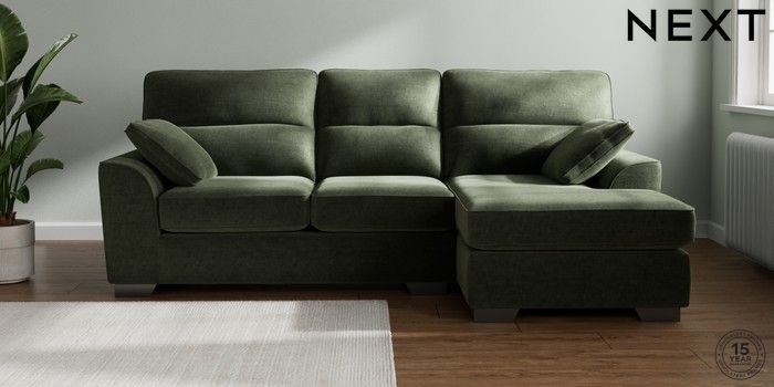7.2.6 Buy Stamford Highback Medium Sofa Chaise - Right Hand Luxe Chenille Mid Green Large Square Angle - Gunmetal from the Laura Ashley online shop Click here to use our website with more accessibility support, for example screen readers