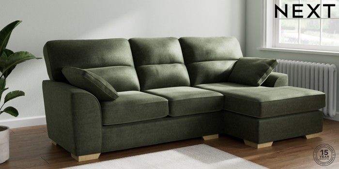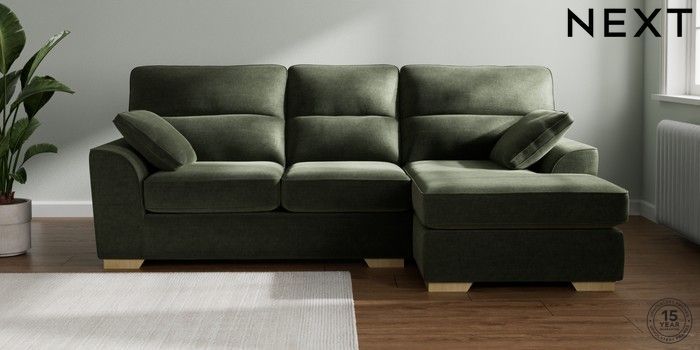 7.2.6 Buy Stamford Highback Medium Sofa Chaise - Right Hand Luxe Chenille Mid Green Large Square Angle - Light from the Laura Ashley online shop Click here to use our website with more accessibility support, for example screen readers