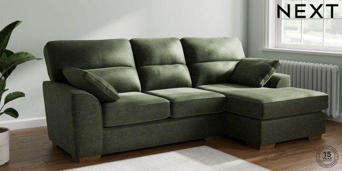 7.2.6 Buy Stamford Highback Medium Sofa Chaise - Right Hand Luxe Chenille Mid Green Large Square Angle - Mid from the Laura Ashley online shop Click here to use our website with more accessibility support, for example screen readers