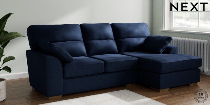 7.2.6 Buy Stamford Highback Medium Sofa Chaise - Right Hand Luxe Chenille Navy Blue Large Square Angle - Mid from the Laura Ashley online shop Click here to use our website with more accessibility support, for example screen readers