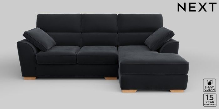 6.12.1 Buy Stamford Highback Medium Sofa Chaise - Right Hand Plush Velvet Easy Clean Charcoal Grey Large Square Angle - Mid from the Laura Ashley online shop Click here to use our website with more accessibility support, for example screen readers