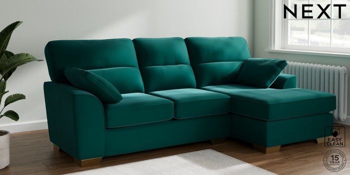6.12.1 Buy Stamford Highback Medium Sofa Chaise - Right Hand Plush Velvet Easy Clean Juniper Green Large Square Angle - Brushed Brass from the Laura Ashley online shop Click here to use our website with more accessibility support, for example screen readers
