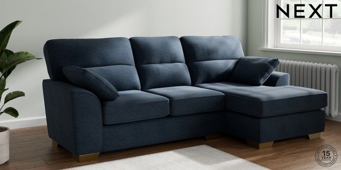 7.2.6 Buy Stamford Highback Medium Sofa Chaise - Right Hand Ripple Chenille Dark Blue Large Square Angle - Brushed Brass from the Laura Ashley online shop Click here to use our website with more accessibility support, for example screen readers