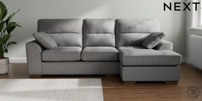 7.2.10 Buy Stamford Highback Medium Sofa Chaise - Right Hand Studio Chenille Mid Grey Large Square Angle - Mid from the Laura Ashley online shop Click here to use our website with more accessibility support, for example screen readers