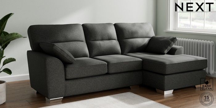 7.2.10 Buy Stamford Highback Medium Sofa Chaise - Right Hand Tweedy Blend Easy Clean Charcoal Grey Large Square Angle - Chrome Metal from the Laura Ashley online shop Click here to use our website with more accessibility support, for example screen readers