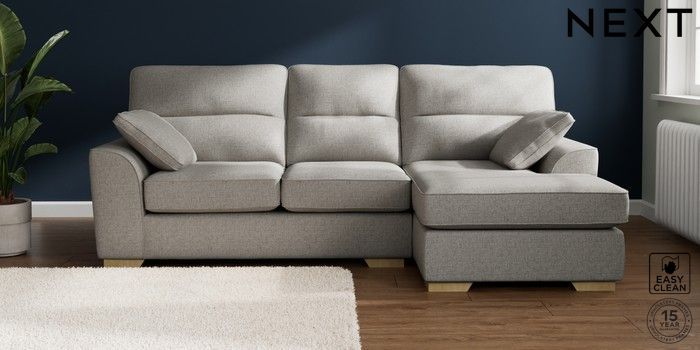 7.2.10 Buy Stamford Highback Medium Sofa Chaise - Right Hand Woven Chenille Easy Clean Light Grey Large Square Angle - Light from the Laura Ashley online shop Click here to use our website with more accessibility support, for example screen readers