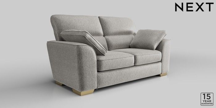 6.12.1 Buy Stamford Highback 2 Seater Sofa Plush Chenille Light Grey Large Square Angle - Brushed Brass from the Laura Ashley online shop Click here to use our website with more accessibility support, for example screen readers