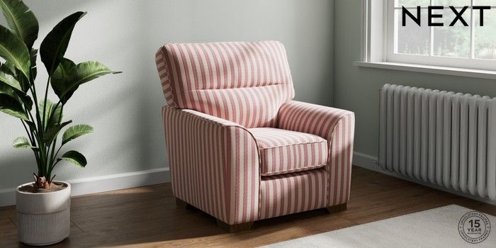 7.3.1 Buy Stamford Highback Small Armchair Bold Chenille Stripe Dark Pink Square Angle - Mid from the Laura Ashley online shop Click here to use our website with more accessibility support, for example screen readers