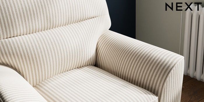 7.3.1 Buy Stamford Highback Small Armchair Chenille Stripe Natural Square Angle - Dark from the Laura Ashley online shop Click here to use our website with more accessibility support, for example screen readers