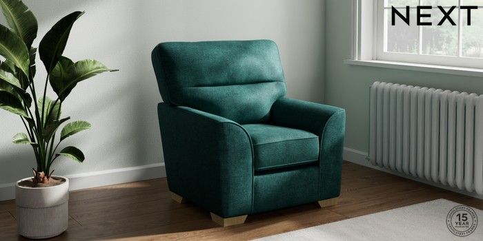 6.12.1 Buy Stamford Highback Small Armchair Plush Chenille Dark Teal Green Square Angle - Light from the Laura Ashley online shop Click here to use our website with more accessibility support, for example screen readers