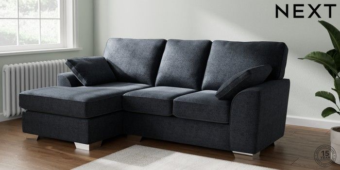 6.12.1 Buy Stamford Highback Small Sofa Chaise - Left Hand Boucle Chenille Dark Slate Blue Large Square Angle - Chrome Metal from the Laura Ashley online shop Click here to use our website with more accessibility support, for example screen readers