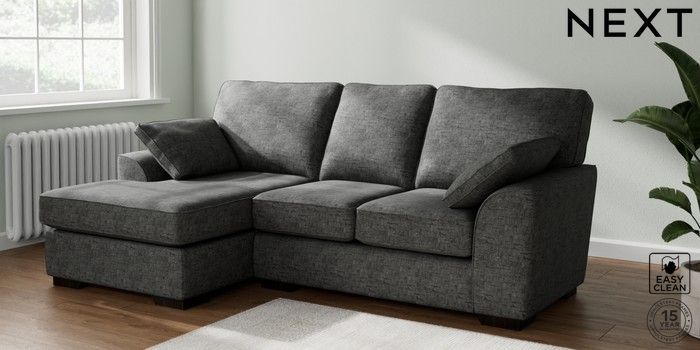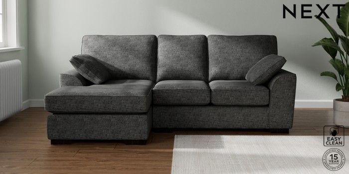 7.2.10 Buy Stamford Highback Small Sofa Chaise - Left Hand Boucle Weave Easy Clean Charcoal Grey Large Square Angle - Dark from the Laura Ashley online shop Click here to use our website with more accessibility support, for example screen readers