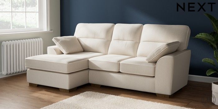 7.3.1 Buy Stamford Highback Small Sofa Chaise - Left Hand Chenille Stripe Natural Large Square Angle - Mid from the Laura Ashley online shop Click here to use our website with more accessibility support, for example screen readers