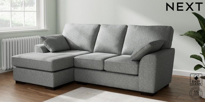 7.2.6 Buy Stamford Highback Small Sofa Chaise - Left Hand Chunky Boucle Easy Clean Mid Grey Large Square Angle - Dark from the Laura Ashley online shop Click here to use our website with more accessibility support, for example screen readers