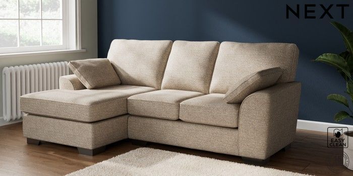 7.2.6 Buy Stamford Highback Small Sofa Chaise - Left Hand Chunky Boucle Easy Clean Mid Natural Large Square Angle - Gunmetal from the Laura Ashley online shop Click here to use our website with more accessibility support, for example screen readers