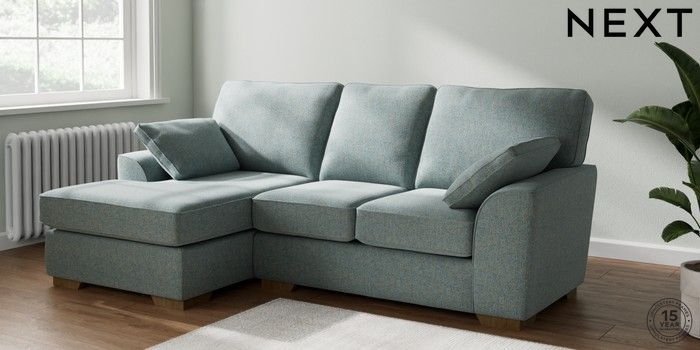 7.2.6 Buy Stamford Highback Small Sofa Chaise - Left Hand Chunky Marl Mid Blue Large Square Angle - Mid from the Laura Ashley online shop Click here to use our website with more accessibility support, for example screen readers