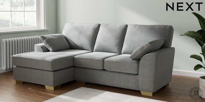 6.12.13 Buy Stamford Highback Small Sofa Chaise - Left Hand Chunky Marl Mid Grey Large Square Angle - Brushed Brass from the Laura Ashley online shop Click here to use our website with more accessibility support, for example screen readers