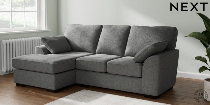 6.12.13 Buy Stamford Highback Small Sofa Chaise - Left Hand Chunky Texture Dark Grey Large Square Angle - Dark from the Laura Ashley online shop Click here to use our website with more accessibility support, for example screen readers