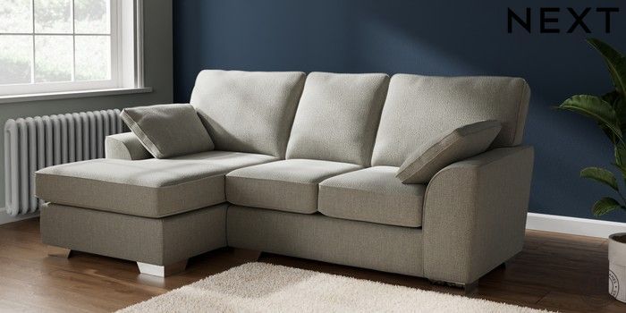 6.12.1 Buy Stamford Highback Small Sofa Chaise - Left Hand Chunky Texture Dove Large Square Angle - Chrome Metal from the Laura Ashley online shop Click here to use our website with more accessibility support, for example screen readers