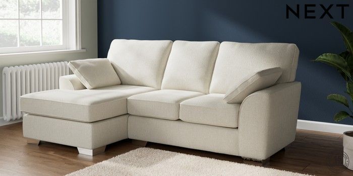 6.12.1 Buy Stamford Highback Small Sofa Chaise - Left Hand Chunky Texture Oyster Large Square Angle - Chrome Metal from the Laura Ashley online shop Click here to use our website with more accessibility support, for example screen readers