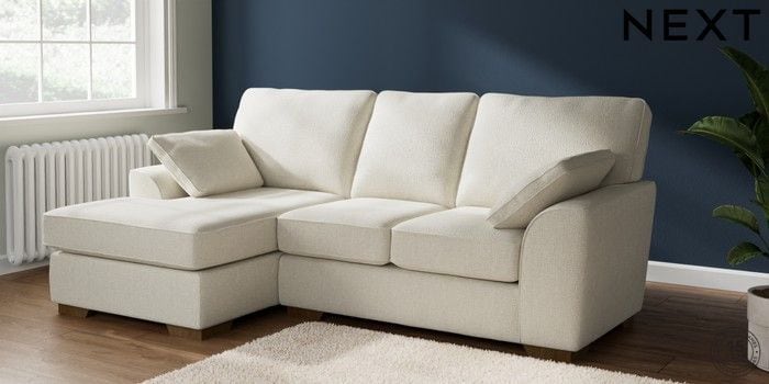 6.12.13 Buy Stamford Highback Small Sofa Chaise - Left Hand Chunky Texture Oyster Large Square Angle - Mid from the Laura Ashley online shop Click here to use our website with more accessibility support, for example screen readers