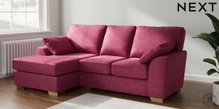 7.2.6 Buy Stamford Highback Small Sofa Chaise - Left Hand Cotswold Chenille Dark Raspberry Pink Large Square Angle - Brushed Brass from the Laura Ashley online shop Click here to use our website with more accessibility support, for example screen readers