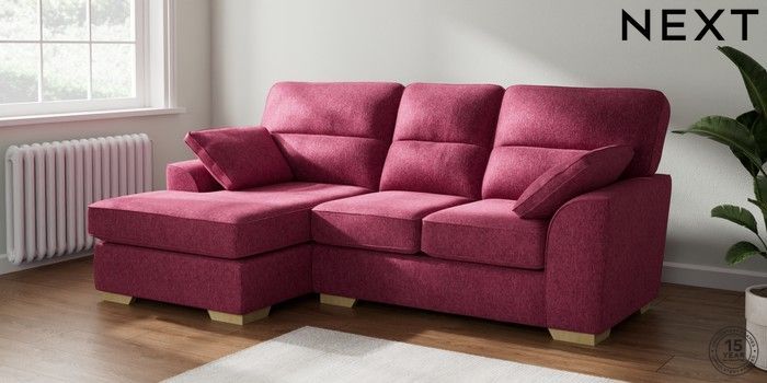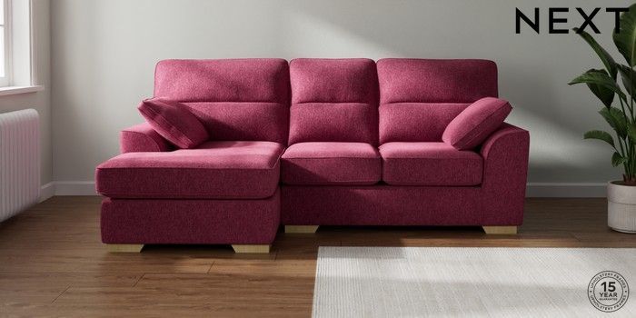 7.2.10 Buy Stamford Highback Small Sofa Chaise - Left Hand Cotswold Chenille Dark Raspberry Pink Large Square Angle - Light from the Laura Ashley online shop Click here to use our website with more accessibility support, for example screen readers