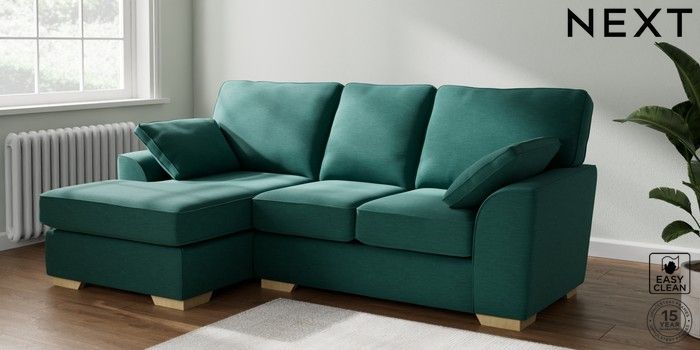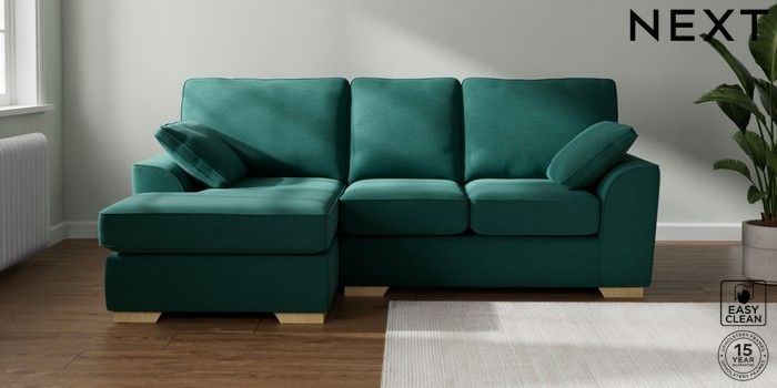 7.2.10 Buy Stamford Highback Small Sofa Chaise - Left Hand Fine Chenille Easy Clean Dark Juniper Green Large Square Angle - Light from the Laura Ashley online shop Click here to use our website with more accessibility support, for example screen readers