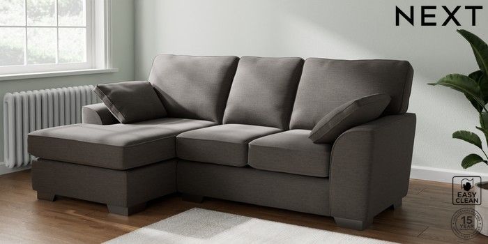 7.2.6 Buy Stamford Highback Small Sofa Chaise - Left Hand Fine Chenille Easy Clean Dark Smoke Grey Large Square Angle - Gunmetal from the Laura Ashley online shop Click here to use our website with more accessibility support, for example screen readers