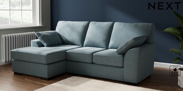 6.12.1 Buy Stamford Highback Small Sofa Chaise - Left Hand Fine Chenille Easy Clean Mid Blue Large Square Angle - Dark from the Laura Ashley online shop Click here to use our website with more accessibility support, for example screen readers
